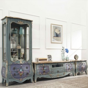 [KLG]381-5296 엔틱클래식장식장+드레스+협탁-(총길이2960)