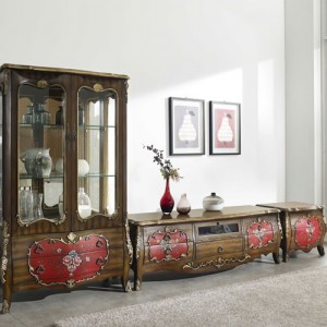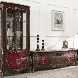 [KLG]381-5296 엔틱클래식장식장+드레스+협탁-(총길이2960)