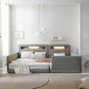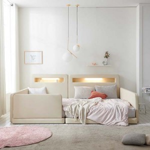 [KLG]8579-8569 조명침대K사이즈+협탁*2개+포켓매트포함
